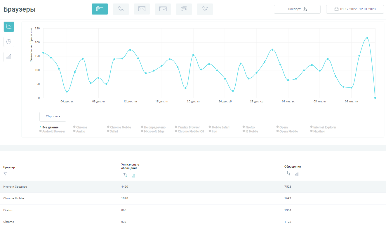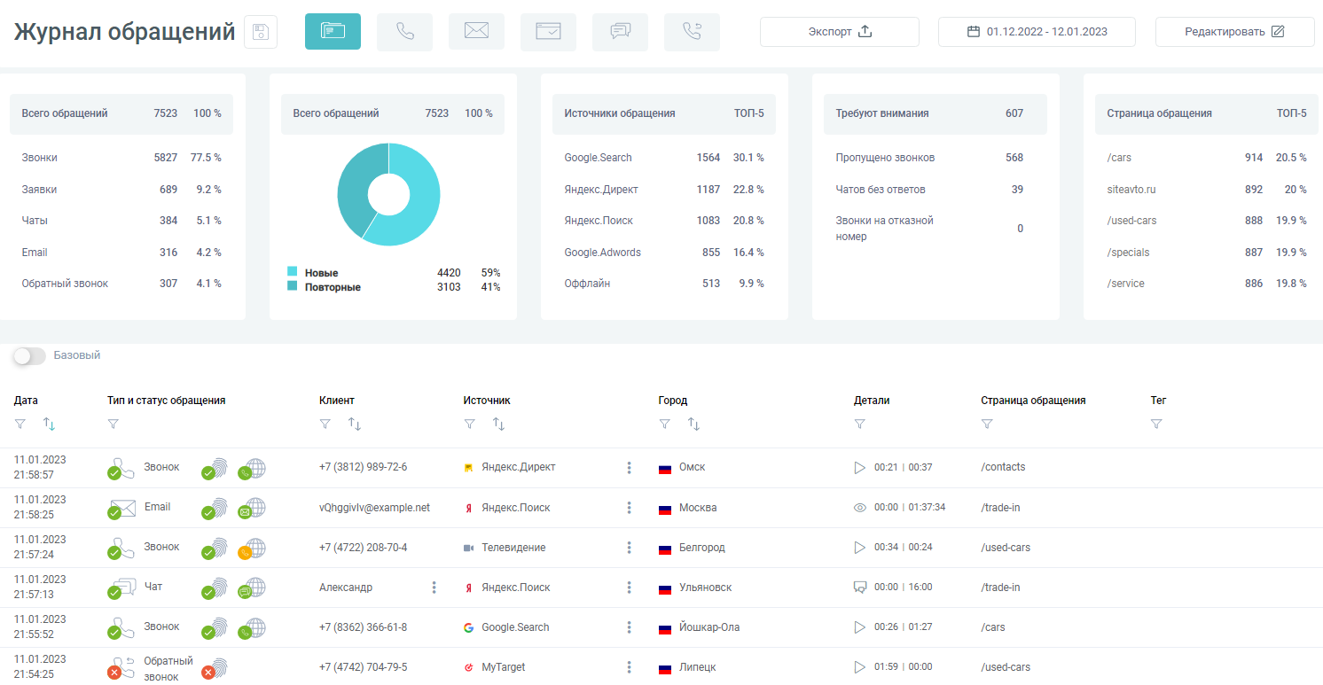- Коллтрекинг, Емейл-трекинг, Обратный звонок, Чат-трекинг, Форм-трекинг.