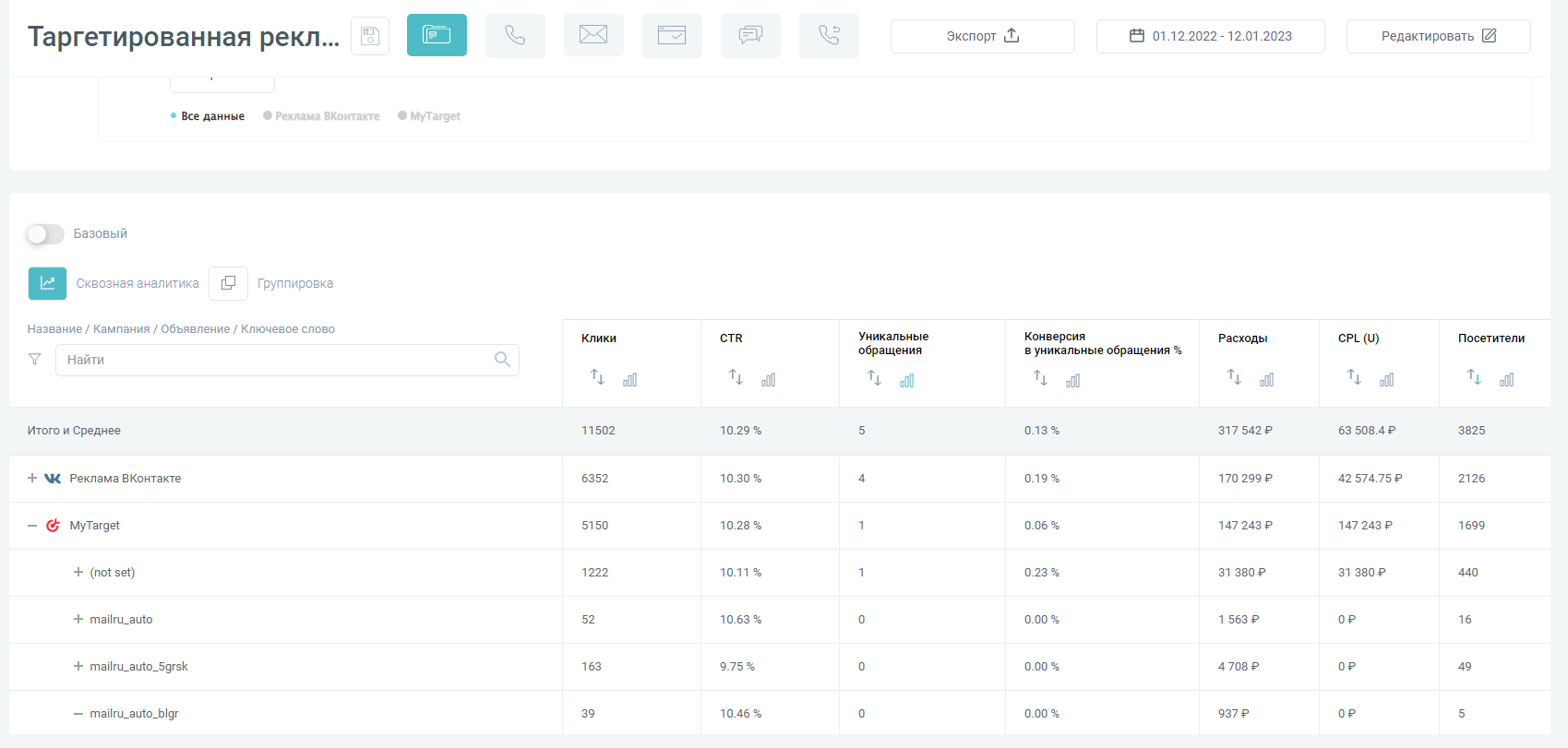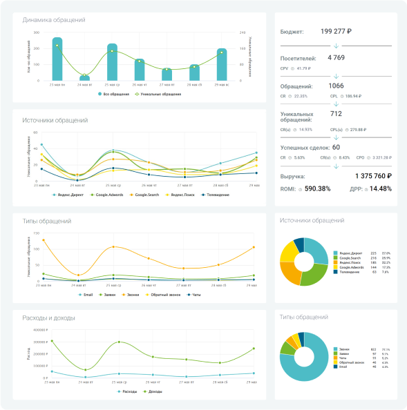 Сквозная аналитика, коллтрекинг, email-трекинг, обратный звонок. Наглядная эффективность маркетинга и рекламы в одном сервисе.
