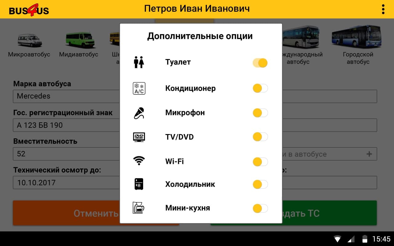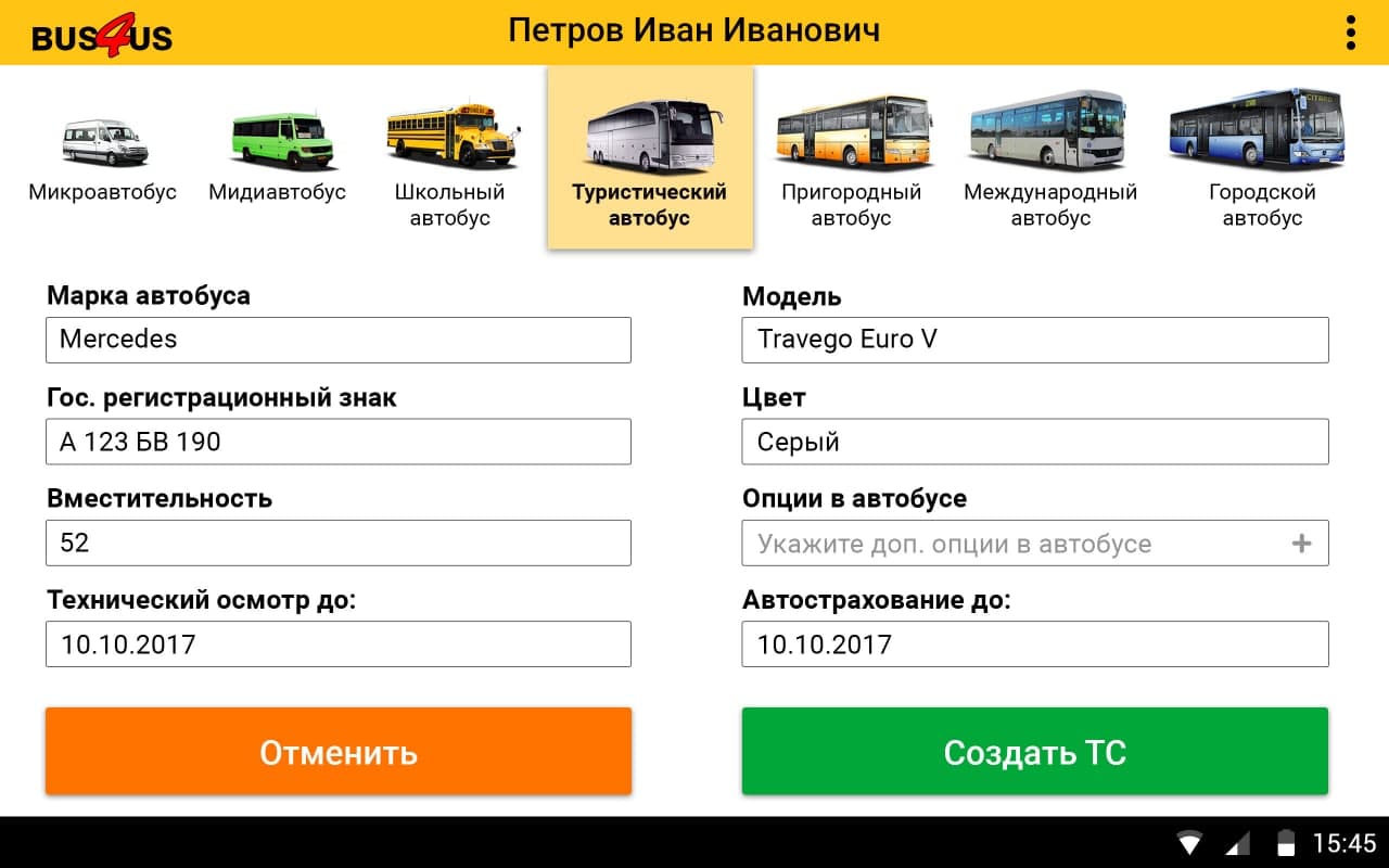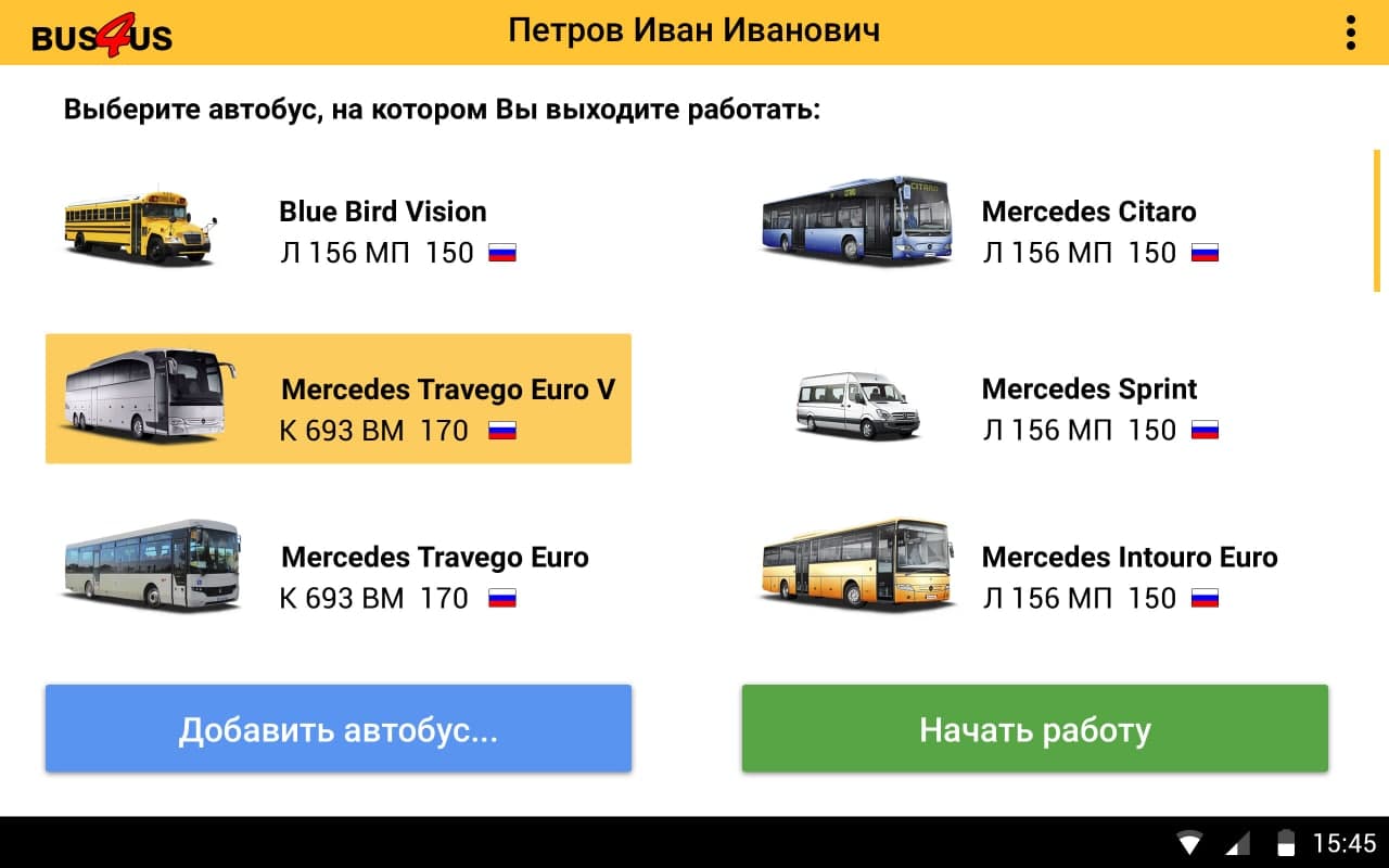 Bus4Us — агрегатор коммерческих автобусных перевозок, первое мобильное приложение с помощью которого можно заказать автобус с водителем. Приложение дает пользователям возможность заказать транспорт различного типа и класса: от семиместного минивэна до туристического автобуса вместимостью до 75 мест.