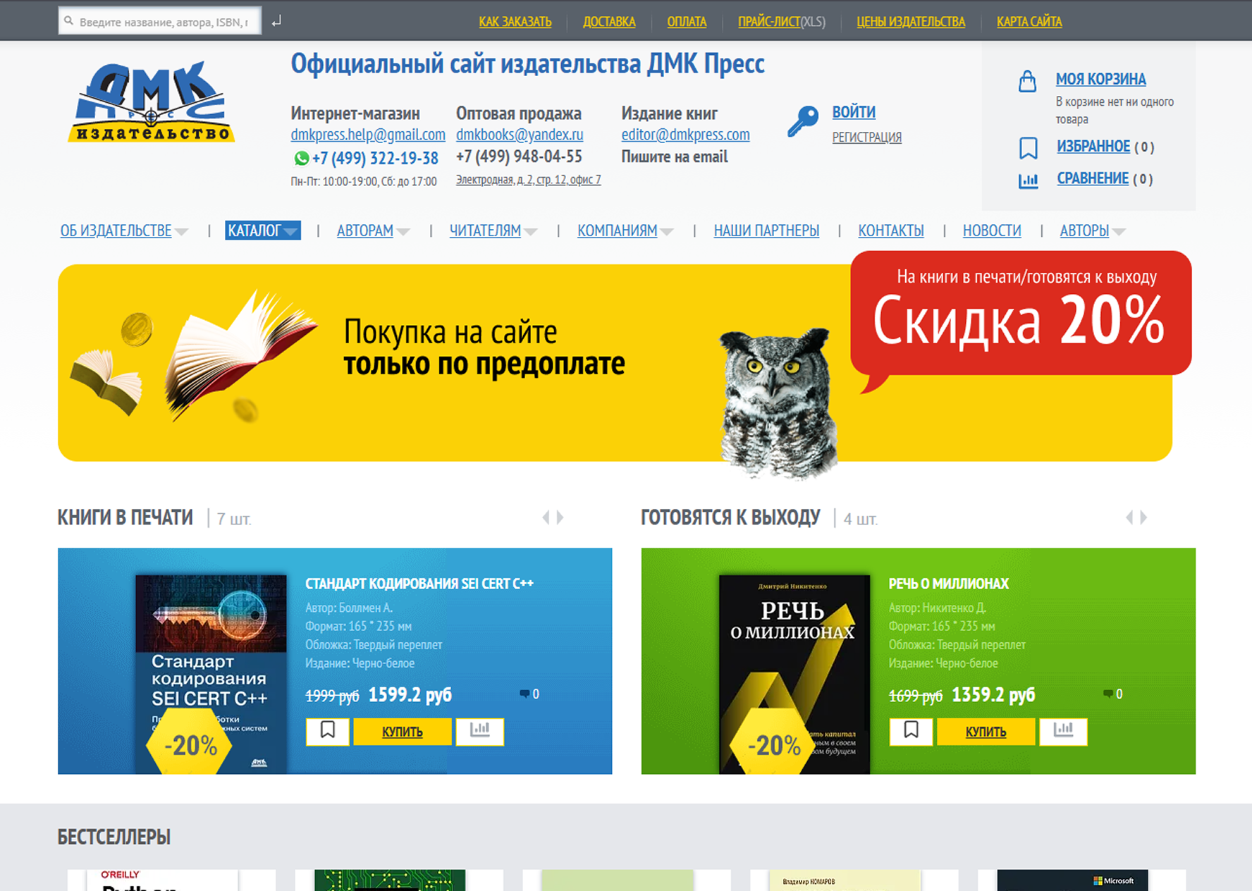- Поддержка и развитие интернет-магазина издательского дома «ДМК Пресс», интеграция с IMSHOP.io, платежным сервисом, сервисом доставки, OneDrive.